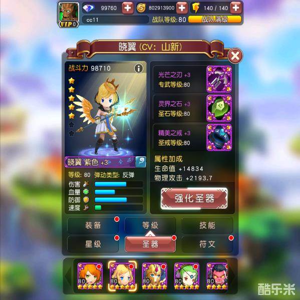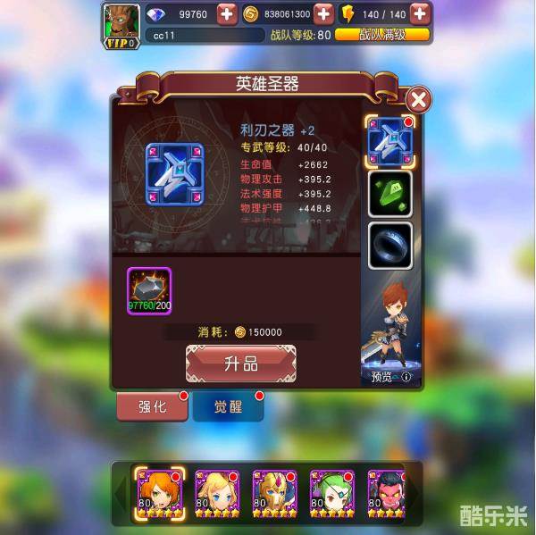每一件圣器可以升级和升品,逐步提升各项属性。