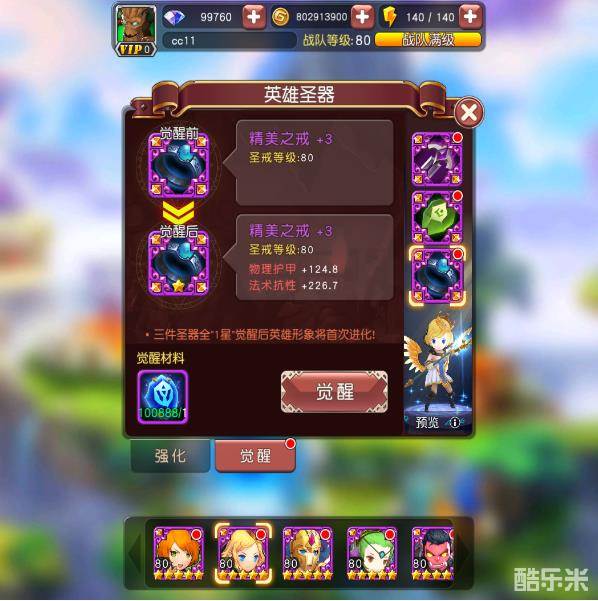 收集足够材料后,圣器可以觉醒。三件圣器都觉醒,可大幅提升英雄属性,同时改变英雄的外观。