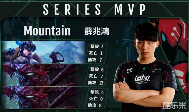 AHQ这场比赛全员表现得都非常不错,但最为亮眼的还要数打野Mountain,整场BO5的参团率高达87.5%。第一场的猪妹,7/1/7的KDA,有效的带起了AHQ的节奏,气势汹汹的为AHQ拿下了首局的胜利;之后连续的三场,他都选择了大虫子打野,打得非常勇猛,第三、四局的比赛中,不仅KDA非常高,参团率更是来到了100%。当真是人如其名,给敌人压力“山”大的感觉。他也获得这次BO5的MVP。