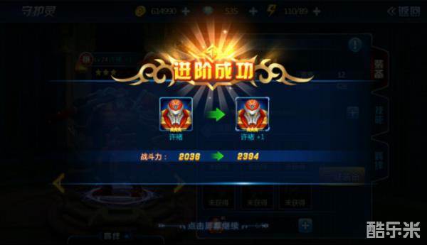 当所有装备都获得了便可进行“进阶”啦,如下图进阶成功后守护灵的战斗力便得到一定的提升哦。操作非常简单的呢。