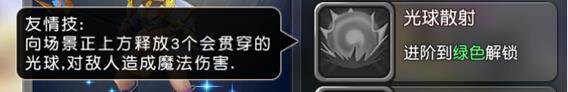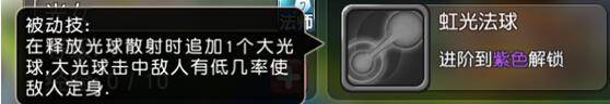 在释放光球散射时追加一个大光球,大光球击中敌人有几率使敌人定身。如同圣堂的紫技一样,给光女瞬间带来一个升华,让她从一个单一的PVE英雄一下子摇身一变成为了PVE和PVP都很强势的英雄。虽然是几率定身,但是一旦定身,对于敌人的影响是十分巨大的。