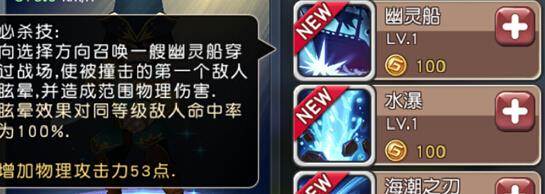 AOE技能,向选择方向召唤一艘幽灵船穿过战场,使被撞击的第一个敌人眩晕,并造成范围物理伤害,晕眩效果对同等级敌人命中率为100%。