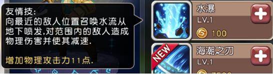 向最近的敌人位置召唤水流从地下喷发,这一AOE技能对范围内的敌人造成物理伤害并使其减速,若敌人的位置不好的话,很可能就是一个水瀑下来,对面只剩四只连友情技都发不出的乌龟了。