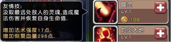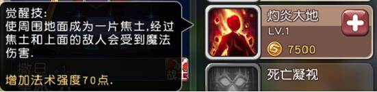 AOE技能,使周围的地面变成一片焦土,经过焦土和上面的敌人会受到魔法伤害,范围固定伤害,也是个积少成多的累积过程。