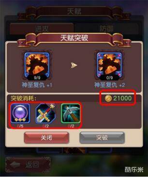 天赋品质由低到高分别为白,绿,绿+1,蓝,蓝+1,+2,紫,紫+1,天赋品质的突破可以英雄属性得到进一步强化,而每一级突破都需要消耗材料与金币。