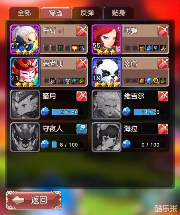 反弹射手:骨仔,寒弓,探险者,飘飘,虎妹,暴走娇娘