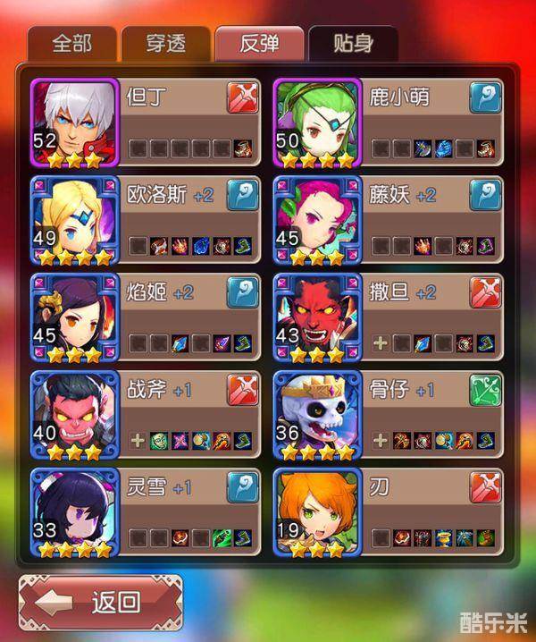 英雄类型分很多种,根据弹射反弹效果不同分为穿透,反弹和贴身。