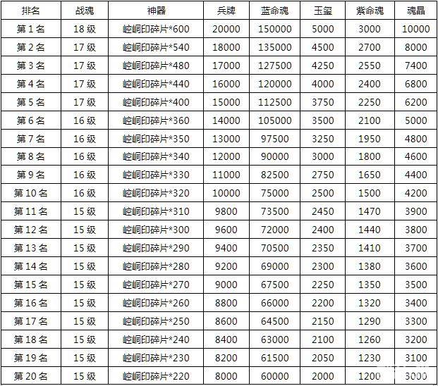 (6)活动期间,累计充值达到50w金币,无论排行名次,均可获得对应排名奖励中双倍数量的战魂奖励;(如小明在排行榜活动中累计充值达到50w金币,最终排名为第三名,则最终奖励会额外获得1个17级战魂)