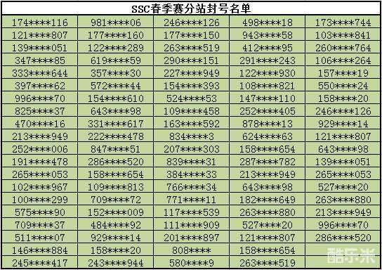在SSC2019春季S1分站海选赛比赛中,经系统检测到部分玩家使用第三方辅助软件作弊(包括卡跑、微加速等),决定对下列名单进行封号处理: