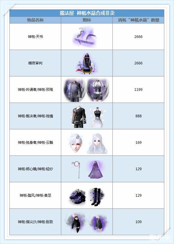 4.1-5.12,神祇水晶可在魔法屋合成!不仅可以合成神袛系列光效情侣套装,而且双人座椅!!!浮云也可以合成哦!!!撒花??ヽ(°▽°)ノ?