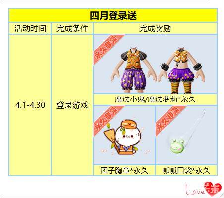 4.1-4.30,任意一天登录即送永久可爱宝儿套和超萌小饰品,快带上宝儿一起来愉快的踏青吧!