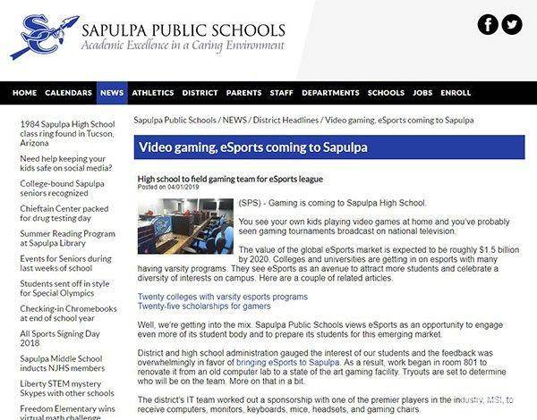 作为参与者之一的萨帕尔帕公立学校(Sapulpa Public Schools)的教练在谈到电竞战队时说:“(建立战队)给那些无事可做的孩子一个去学校的理由”。