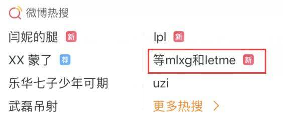 此外,在昨天的比赛结束后,“等mlxg和letme”还一度登上了微博热搜。