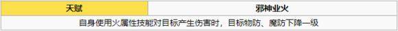 炼狱黑炎,50%使对手魔攻下降1级且范围是1排, 加上自身的天赋在本身的debuff赋予速率上得到了质变程度的变化。就算是单纯只依赖物攻端的她也可以带上这个技能作为有伤害的辅助技能用,还能帮助队友大幅提升进攻效率,美中不足的是这技能的命中率实在有些尴尬,关键时刻容易掉链子