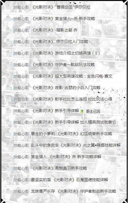 在官方攻略团成立前,《光影对决》的三次测试都已有玩家主动撰写攻略,分享自己的经验和心得,但都分散在论坛与贴吧等地,质量参差不齐,也无法做到所有渠道覆盖,难免会令很多玩家错过精品攻略。
