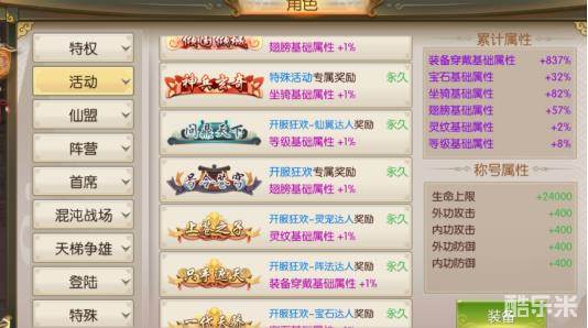 此外仙盟技能、被动技能都能为角色提供各种属性战力加成