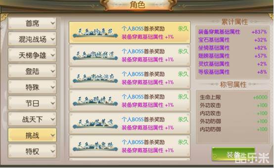 土豪建议:所有已获得的称号都会为你累计属性加成,尽量去收集吧~
