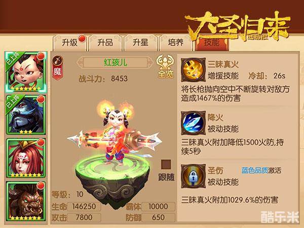 在《西游记之大圣归来》手游中,红孩儿自然也是一副Q萌可爱的样子。然而,要是采用轻敌的态度与他对战,可能是会“很受伤”的。红孩儿对的初始技能“三昧真火”绝对是酷炫又强大,分分钟就能对对手造成严重的火伤,而随着品质的提升,这个技能的攻击力也能变得更加强大。