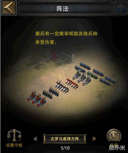 盾阵:单撸效果更好,集结和防守会差很多。原因:增加暴击率 增加单人攻城伤害,盾阵法的进攻伤害加成不错,但是防守和集结时部分属性不生效。
