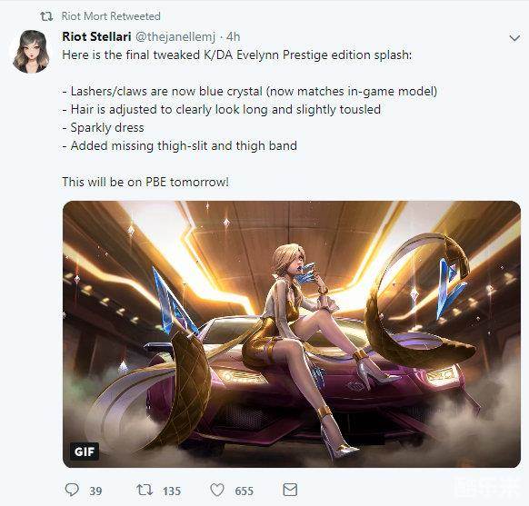 Riot设计师Stellar更新了推特,表示至臻K/DA伊芙琳的原画被进行了调整。