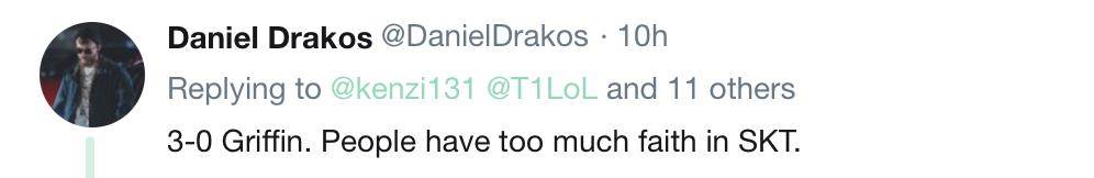 拳头解说Drakos:3-0,Griffin赢。大家对SKT的信心过多了