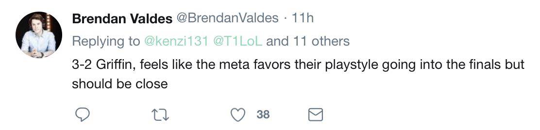 解说Valdes:3-2,Griffin赢,感觉这个版本更适合他们的打法,但是决赛应该会是实力相当的