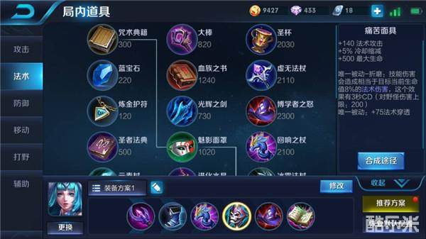 解析:时之预言除了能加强王昭君的法术伤害与生命值,被动英勇奖赏还加强了王昭君的续航能力,减少回基地次数,帮助王昭君快速发育;而另一被动守护,则增强了王昭君的防御力。秘法之靴除了增加王昭君的移速,还可以提高其法术穿透,使她打出更高伤害。回响之杖大幅度增加王昭君的伤害,并且增加少量移速,加强了王昭君的自保能力。痛苦面具则给提供了王昭君法术攻击、冷却缩减和生命值的加成,增强了王昭君的综合实力,同时被动提供了大量的法术穿透,降低了敌方英雄特别是坦克类英雄的防御力。博学者之怒还有贤者之书都是用来增强王昭君的伤害,装备出齐之后,完全可以让王昭君的大招达到毁天灭地的程度。同时贤者之书的被动也增加了王昭君的生存能力。