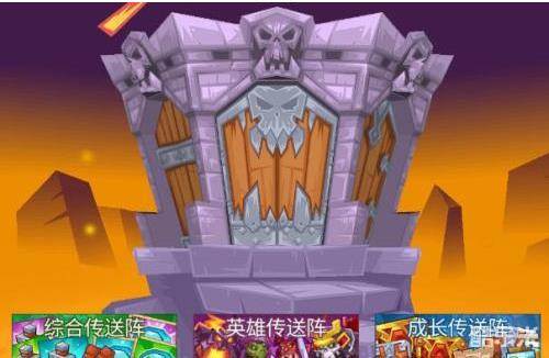 在游戏的城堡界面,左下角有一个牛头标志的图标,点击该图标,玩家就可以进入传送阵了。传送阵包括综合传送阵、英雄传送阵和成长传送阵三种。