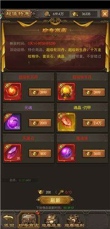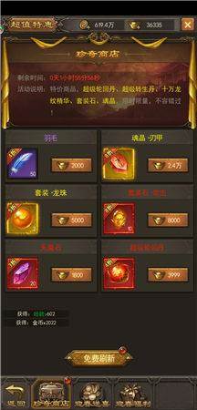 另外,活动期间还开启福利商店,商店里能买到转生丹,轮回丹,天魔石等道具,并且折扣极低,对比一下商城里的转生丹,商城里的转生丹最低五折,但是福利商店里的转生丹是四折,两个商店高下立判,玩家怎么能不趁机买一波呢?还有四折龙纹,龙纹只靠每日奖励是不行的,量太少,该买还是得买!