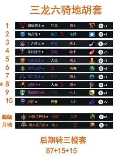 刀塔自走棋手游新手吃鸡套推荐——三龙六骑地胡套。