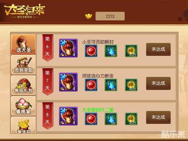 在《西游记之大圣归来》手游开服的连续7天内,玩家每天都可以在七天乐界面内领取免费的每日福利。玩家们只需点击主界面的七天奖按钮,就能打开开服七天乐界面,查看和领取各种奖励。同时,玩家在成功完成一些特定参与条件后,还可以免费领取各种额外的奖励。