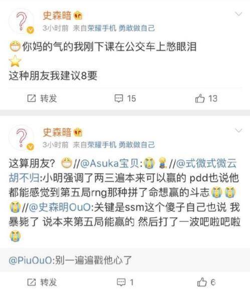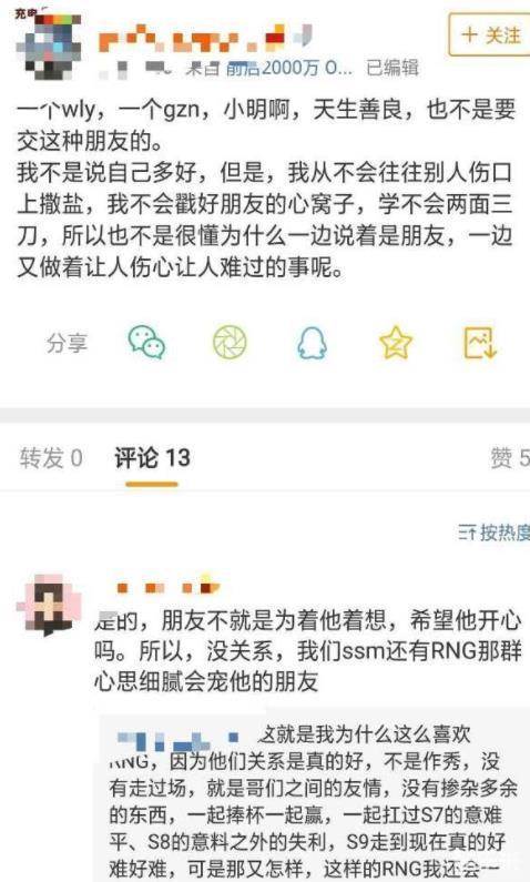 原来是几人的聊天之中,提到了S8全球总决赛的事情,Ning说了IG这边训练撒的情况,以及theshy和Rookie真的猛,JKL的进化,以及说到了RNG在S8的失败,让ning非常吃惊,并且表示真没想到RNG会输,还提到了RNG和JDG那个BO5,表示RNG最后一局是有机会获胜的,这些内容,引发了一些RNG粉丝的不满,他们认为这些都是ming心里的伤痛,ning作为ming的好友,却在朋友伤口撒盐,这种人算得上是朋友吗?只有RNG那群心思细腻的队友配当朋友!