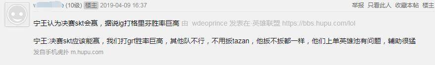 不过宁王还谈到了IG和GRF战队打过许多次训练赛,但是IG的胜率非常高,其中GRF的打野Tarzan,在BP的时候根本不需要针对他,主要因为Tarzan的英雄池非常深,根本针对不了。宁王还提到GRF的上单英雄池有问题,这一点也潜在暗示了在BP的时候针对GRF上单就好了。