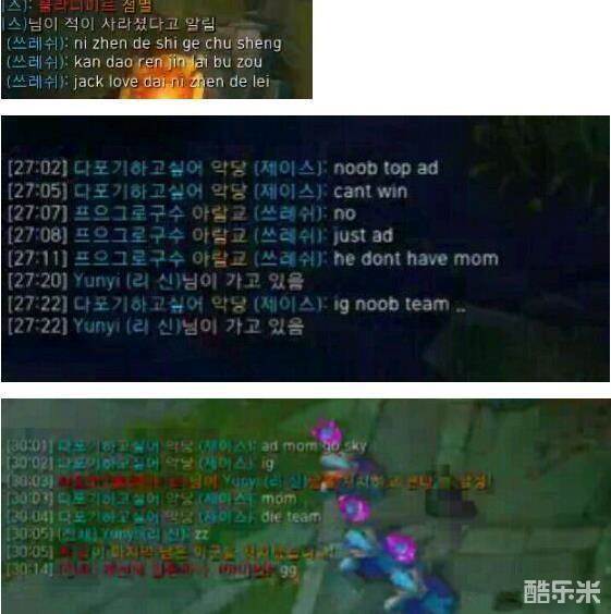 简单带大家回顾一下,事情发生在2017年的时候,那时候宝蓝和JKL韩服双排,但是JKL排到了上单,宝蓝排到了AD,刚好辅助是诺夏,自然而然IG的下路双人组在不熟悉的位置打得并不怎么好,诺夏很快就开始怒喷宝蓝:你真是个畜生,看到人进来不走,JKL带你真的累,没有妈妈,IG是SB战队,mom die team。在知道对方同是职业选手的情况下,说话可以是非常难听了,当然IG这两人并没有任何回应。