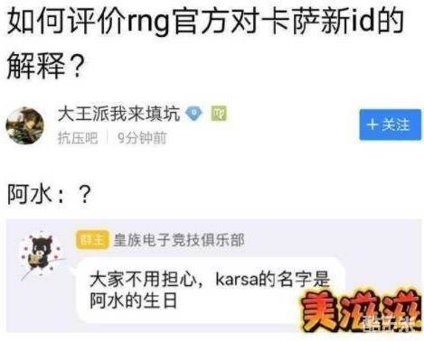 而RNG官方群管理随后给予的回应则是:大家不用担心,Karsa的名字是阿水的生日。