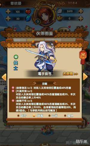 毒手疯丐是一个攻击型的橙色侠士,技能方面,一技能能够对目标及其相邻位置造成伤害,范围还是比较不错的。二技能同样是对目标及其相邻位置造成伤害,附带暴击率上升的效果,能够大大提升此次伤害是输出能力,和苏清羽的技能效果差不多,只不过范围会略有不同。在和李胜共同出战时,还能够触发合击技能,合击技能附带提升本次攻击暴击率的效果,能够进一步加强合击技能的输出。同时还拥有自身受到伤害降低的效果,可以提升毒手疯丐的生存能力。