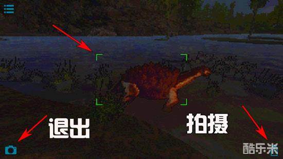 2、调出相机拍摄界面后,调整好视角(尽量靠恐龙近些),如果相机的四方形边框变绿,点击右下角↑符号,即可完成拍摄;