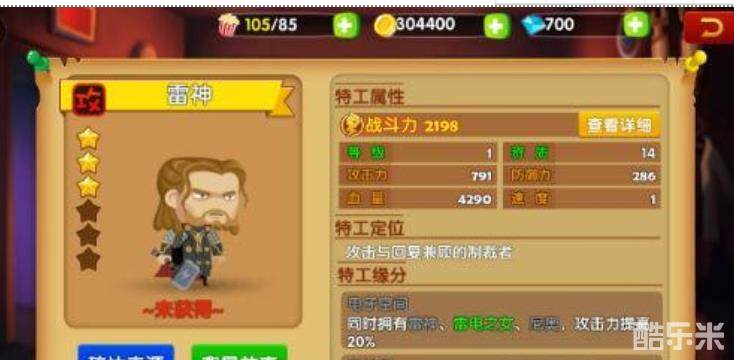 总的上来说,雷神在后期的作用还是非常明显的,既有攻击又有防守,不管是在副本推图还是竞技PK都是非常有用的。如果说玩家们获得了雷神,那么可以培养培养,放在后排然后搭配一些肉度较高的特工,相信在竞技PK中会有不错的效果,希望对大家有所帮助。