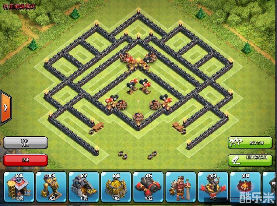 若采较宽松的封闭式阵型,又很容易被石法皮卡流扫台,所以想要让城堡、双王不容易被勾出来,以目前的墙数,似乎螃蟹阵是比较好的选择。