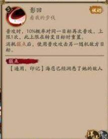 Lv.5 拥有潜影时,影回的追加普攻概率额外增加50%,直到下一次攻击结束