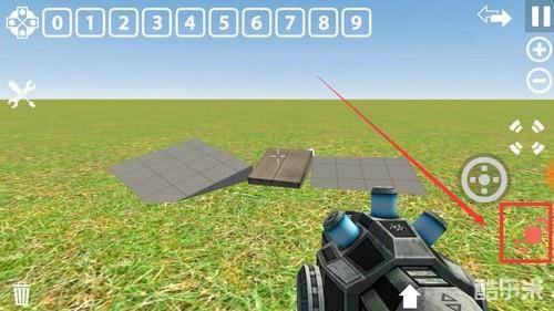 移动:屏幕中心十字标对准物体后,点击右侧圆圈按钮,打开移动控制界面。下图把物品移动到箭头位置的话,手指向右滑动屏幕,物品会跟随屏幕视线也向右移动。