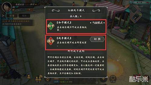(1)和平模式:和平模式下的玩家被战争模式下的玩家攻击时,如果成功击败战争模式的玩家,和平模式下的玩家不会红名,而相反战争模式的玩家击败和平玩家会产生红名;