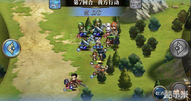 5回合海恩圣言收了骑兵,其他人往右移动避开骑兵飞兵的行动范围(我的艾尔文站在右上角正好在利亚特强袭范围内)