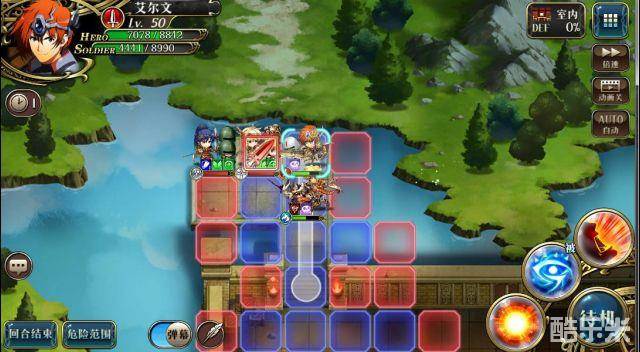 开局全体上移,艾尔文一个人站进弩车射程。这里如果艾尔文被弩车打晕,那就时钟一下,不然等于浪费1回合。