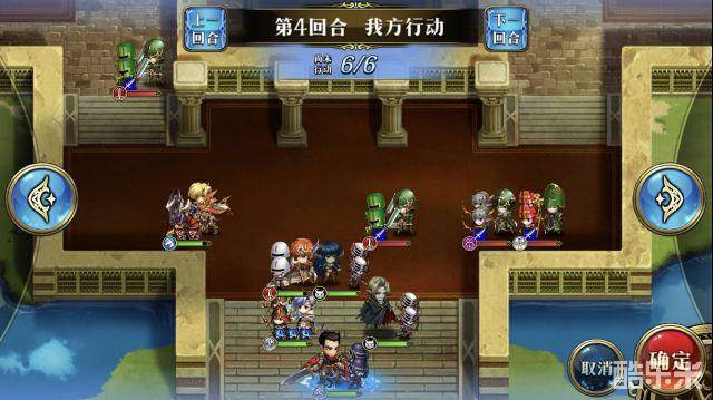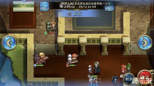 6回合,索尼娅向下移动解除禁疗效果,海恩圣言打枪兵NPC给索尼娅回血,艾尔文+男恶魔收掉枪兵。
