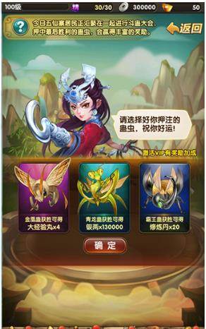 每个蛊虫对应奖励为:经验丸、银两、修炼丹;