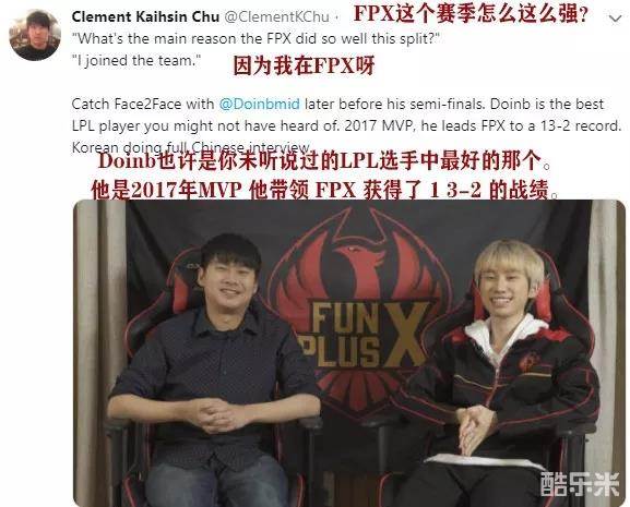 英雄联盟Doinb放话:FPX这么强是因为我的加入