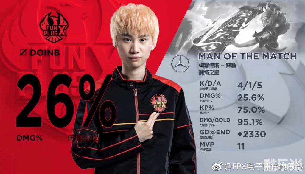 也许有人觉得本赛季FPX的阵容并不弱,首先是打野小天有着很强的实力,本赛季也多次拿下局最佳,上单GimGoon也有着非常强的抗压能力,同时需要他Carry的时候也能站出来,再加上下路ADC本赛季进步非常大。不过这一切都源于Doinb很好的将大家串联到一起,Doinb在局势把握上非常清晰,多次前期利用游走支援帮助队伍打开局面。另外,Doinb也是一个打法非常注重团队的选手,屡屡选出功能型中单或者偏团队的出装,这些都牺牲了个人的数据。