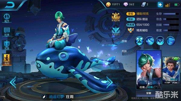 近期版本更新后的庄周二技能伤害得到加强,输出能力和生存能力都变得更加强大,还能给于队友不错的移速增益,利用大招还可以帮助队友免控减伤,同时操作上也没有什么难度,是一个比较容易上手的辅助英雄。庄周主要依靠频繁释放二技能进行输出,利用大招免控辅助团队。所以装备上尽量搭配冷却缩减效果的装备,为了更好的辅助团队,装备需要选择权肉装,这样才能更持久辅助团队。团战时,主要职责是保护队友,为队友承受伤害,利用二技能持续性的为队友提供移速增益,同时不断消耗敌人,在敌人释放技能时尽量帮队友挡住,保护好队友,而庄周由于被动的存在,使其在团战中几乎不受控制技能影响,这也有利于庄周发挥辅助的任务。需要注意的是,在队友被控制时可以释放大招解控,释放时尽量将全部队友包裹在技能范围,可以更好的发挥大招解控免伤的效果。虽然庄周的伤害对于坦克战士来说显得不值一提,但是对于敌方脆皮来说,庄周利用二技能持续性叠加伤害,也能令其不能正常输出。