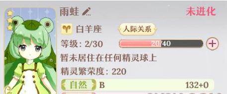 雨蛙是自然界中的可爱小精灵,拥有自然和可爱两种特点,在游戏初期的使用度会比较高,进化后,技能课额外增加50%可爱维度得分,实用性比较高,但是要将其培养到30级还需要多消耗些耐心才行。